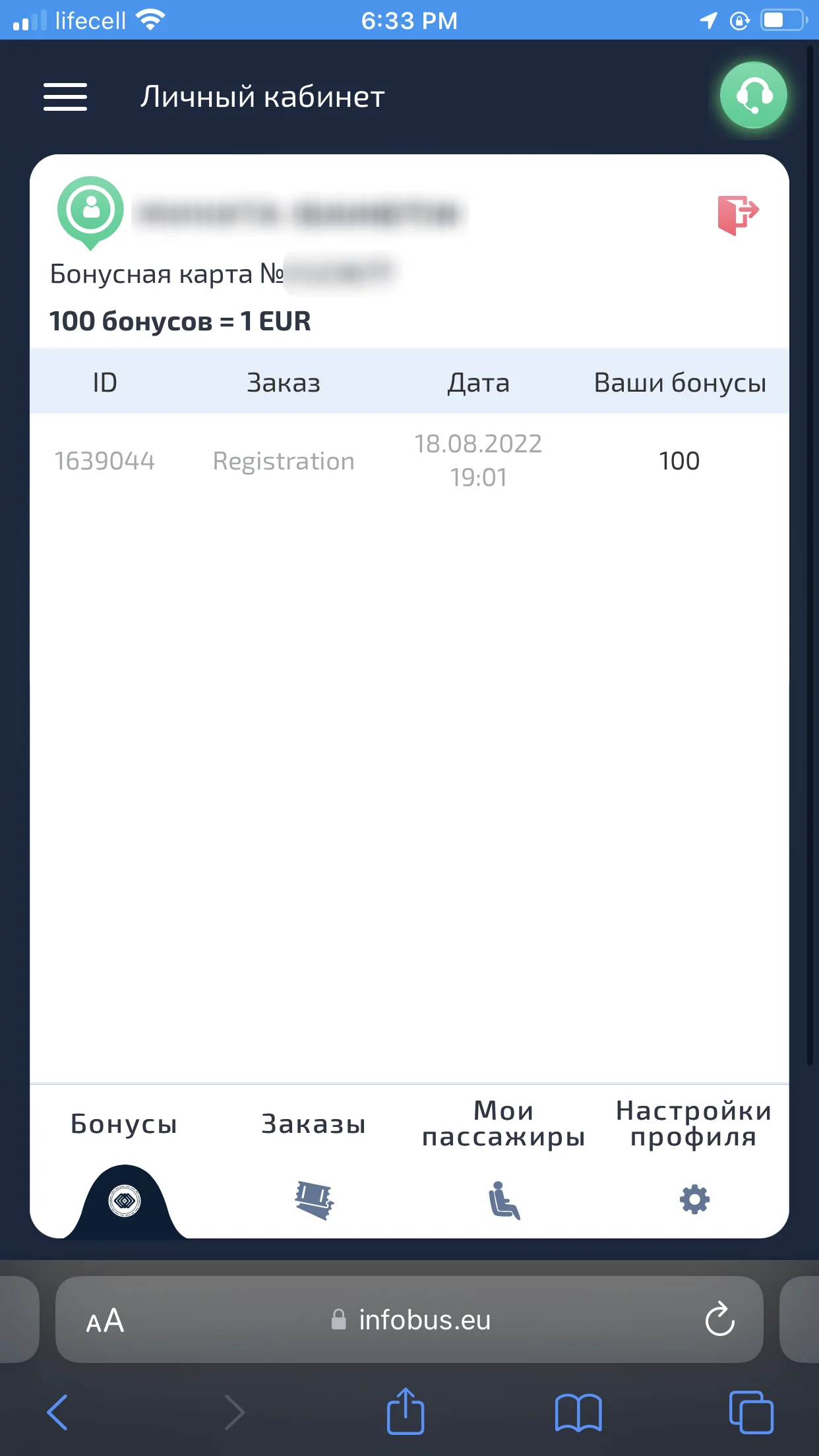 Чтобы вовремя получить бонусы, пожалуйста, присылайте нам номер своей бонусной карты, которую можно найти в личном кабинете пользователя INFOBUS.