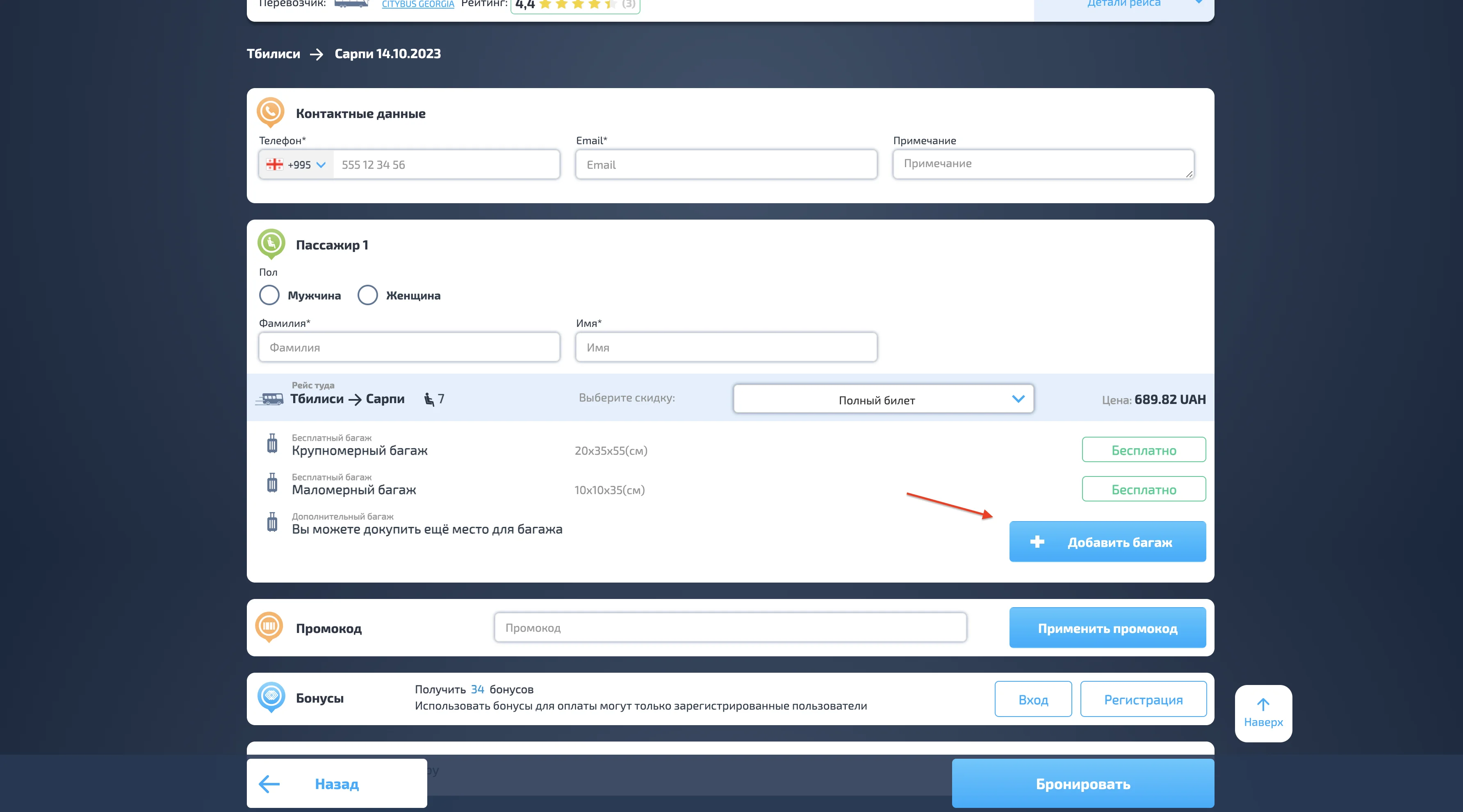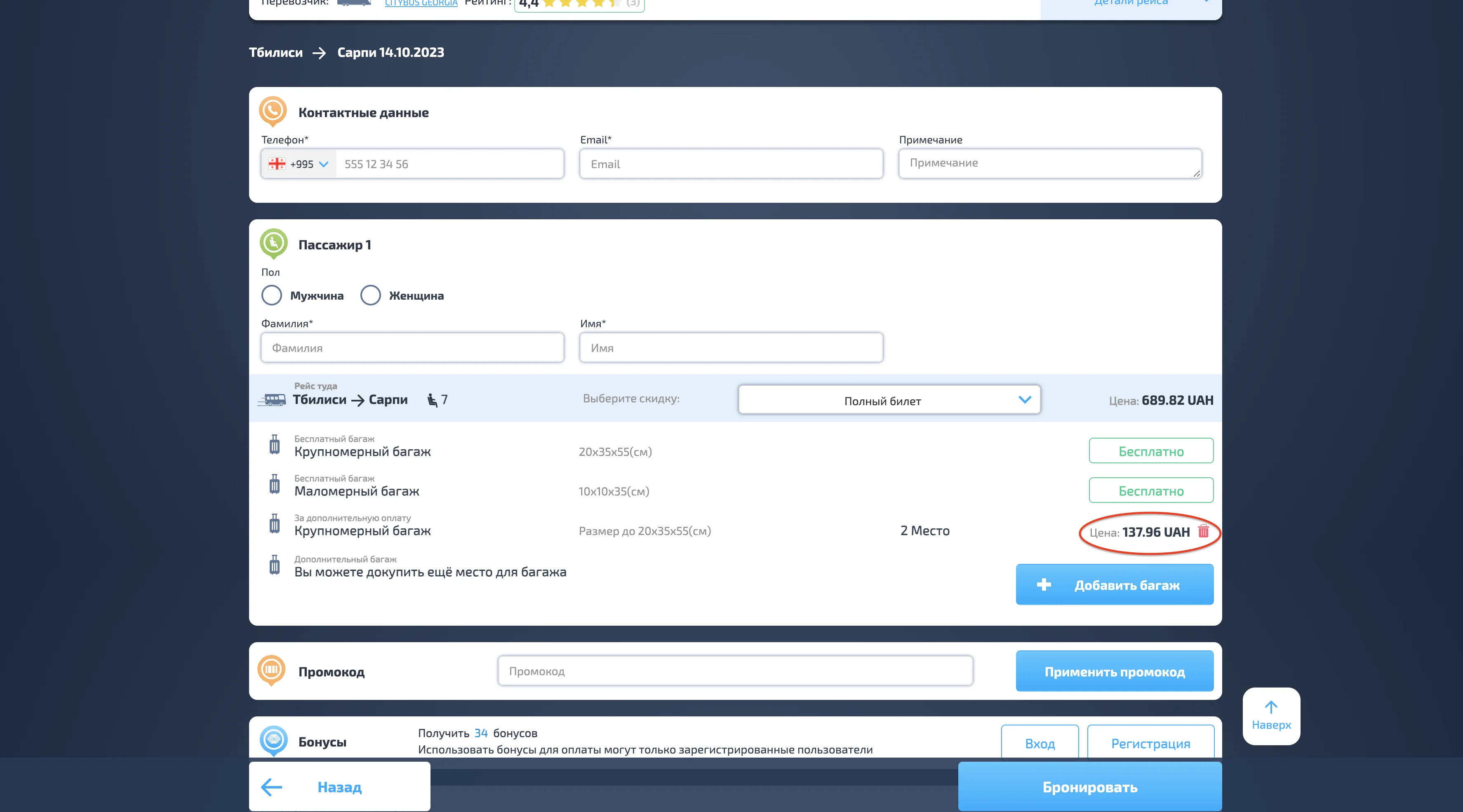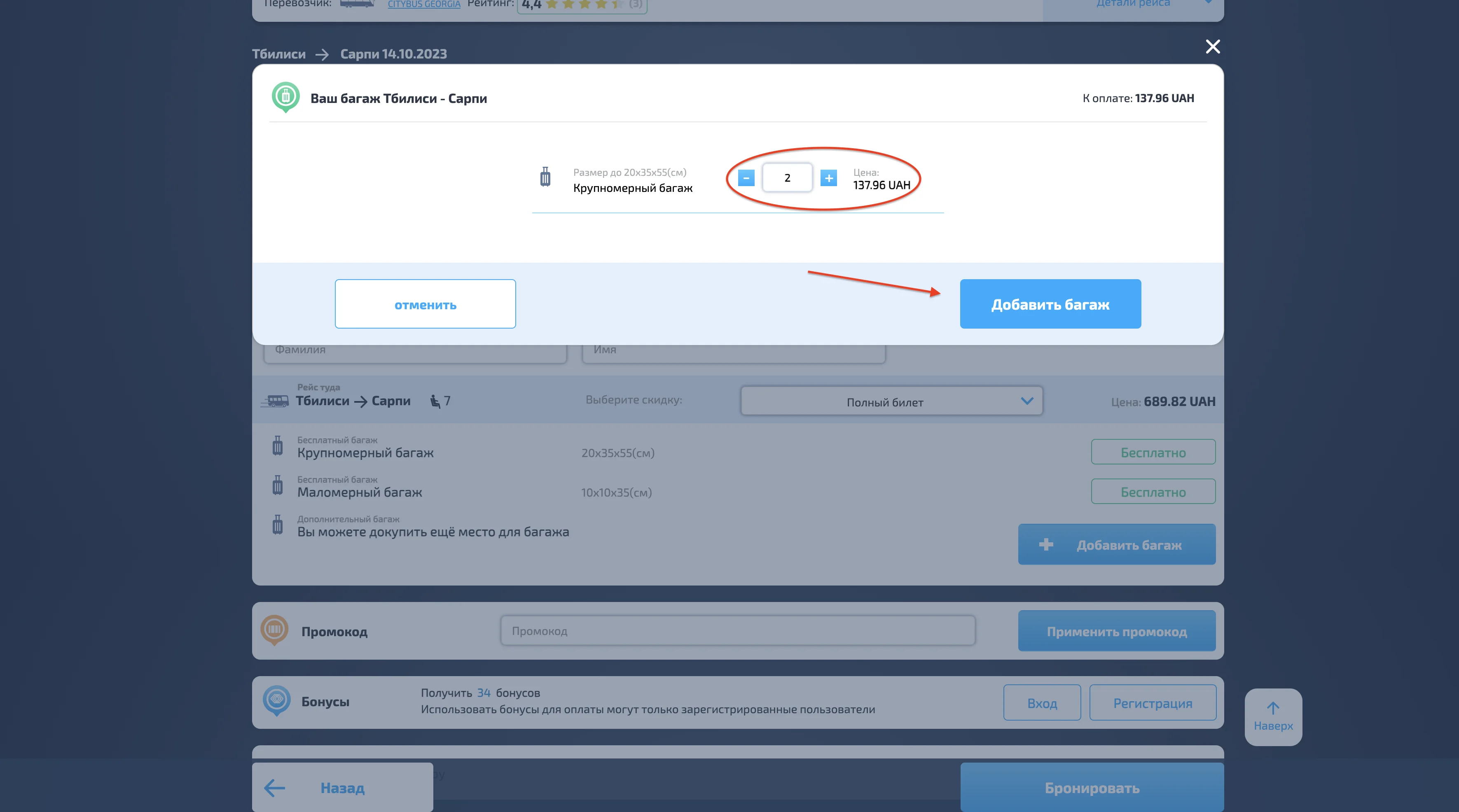 Функция дополнительного багажа уже достYпна у таких перевозчиков: FIRMA Galiz, OOO “Sarvalteh auto”, Citybus Georgia, MODULTRANS.