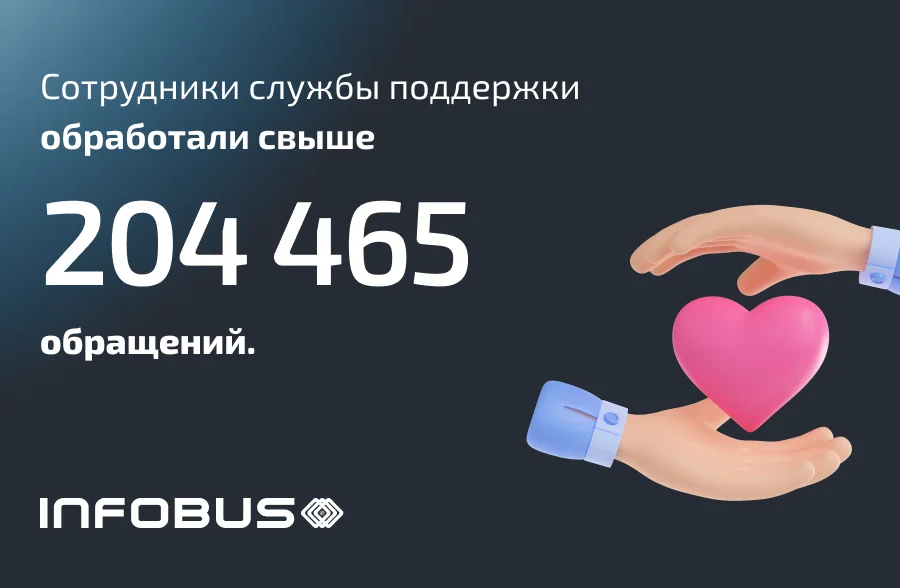 Служба поддержки INFOBUS также не дремала! И за год обработала более 204 465 обращений. Это настоящие герои, которые всегда готовы прийти на помощь, независимо от сложности ситуации.
