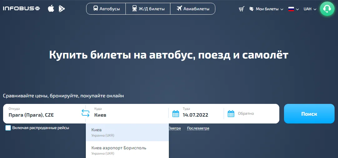 Покупая билеты на сайте INFOBUS, вы убедитесь, что INFOBUS - это быстрый онлайн сервис. Процесс покупки билетов на автобус, поезд или самолет займет у вас не более 5 минут.