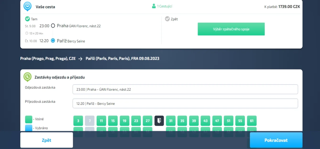 3. Dalším krokem je výběr sedadel na schématu, kde je třeba zvolit počet cestujících.