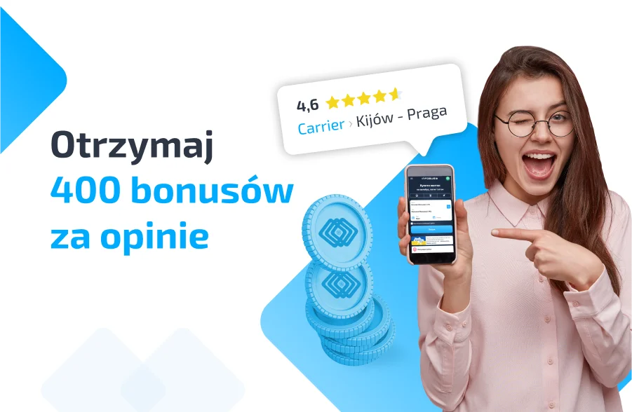 Witajcie przyjaciele! Mamy dla Was dobrą wiadomość. Od dziś do 18 grudnia 2022 będziecie mieć możliwość otrzymania aż 400 dodatkowych bonusów na Wasze konto osobiste za dobre opinie o firmie, które następnie można zamienić na rabat do -50% przy zakupie biletów.