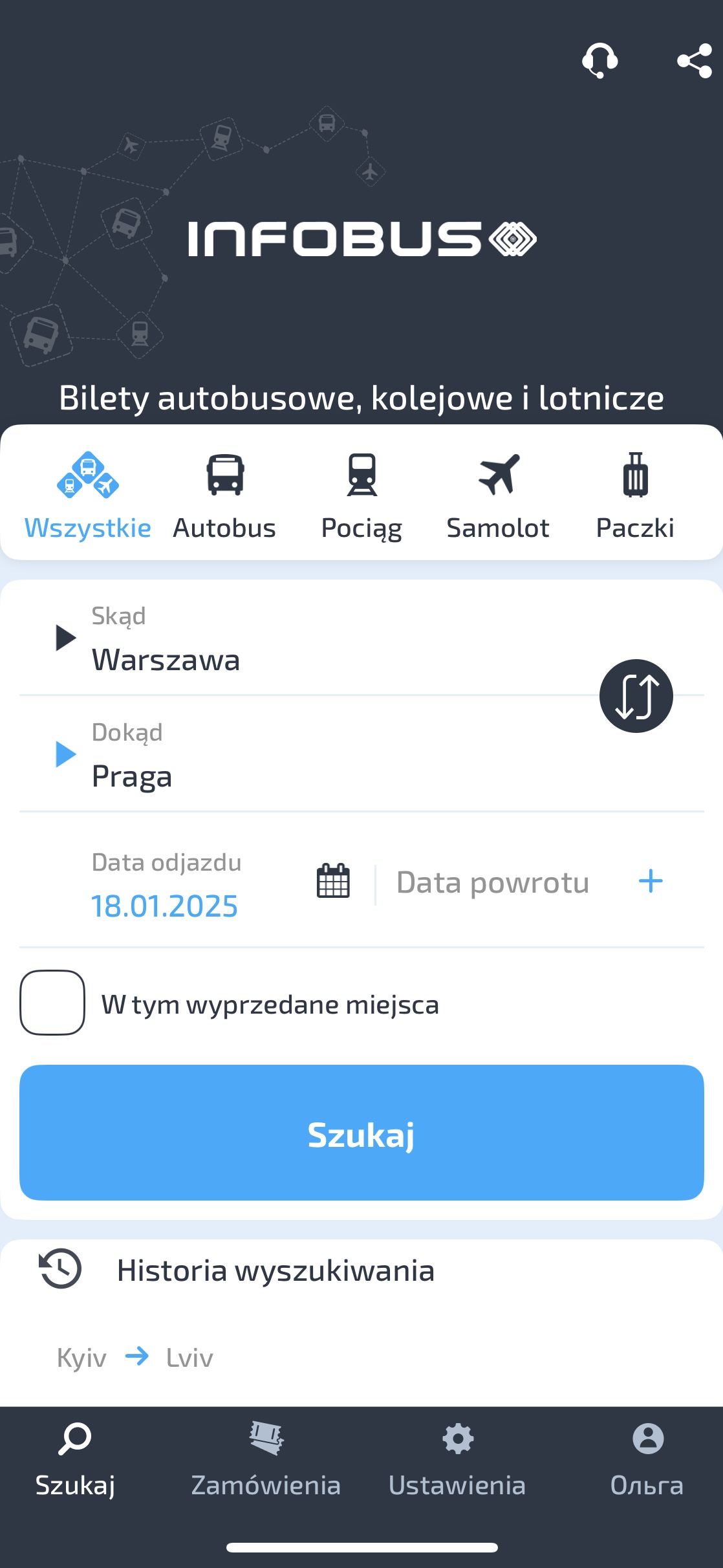 Doświadczeni podróżnicy wiedzą, że aplikacja mobilna INFOBUS ma wszystko w jednym miejscu: aplikacja pozwala wygodnie wyszukiwać, porównywać i kupować bilety autobusowe, kolejowe i lotnicze za pomocą kilku kliknięć, oszczędzając czas i wysiłek. To jest dokładnie to, czego potrzebuje każdy, kto kocha podróżować. Jeśli nie masz jeszcze aplikacji INFOBUS, jesteśmy gotowi przekonać Cię do zainstalowania jej na swoim smartfonie. Przeczytaj więc instrukcje, jak z niej korzystać i jakie wygodne funkcje posiada: