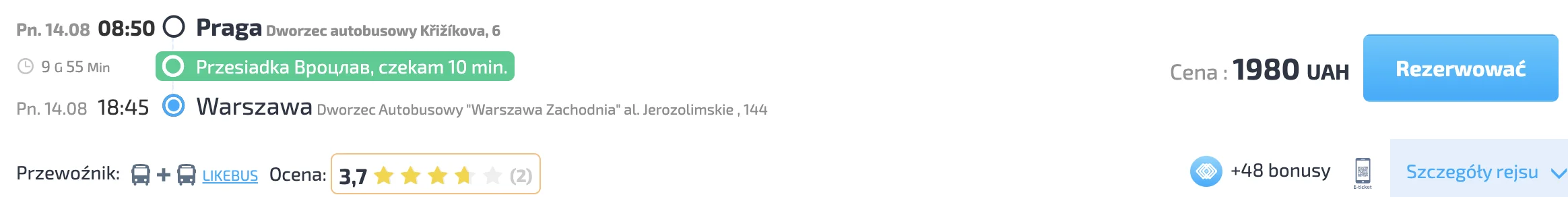 - Rekompensata za różne ceny biletów. Jeśli znajdziesz bilet tańszy niż na stronie INFOBUS, firma zwróci Ci różnicę, która zostanie przeliczona na euro (100 punktów bonusowych = 1 euro). Należy jednak pamiętać, że kwota nie jest stała, ponieważ zależy od tego, jak bardzo cena biletu różni się od innej; więcej informacji na temat rekompensaty można znaleźć tutaj.