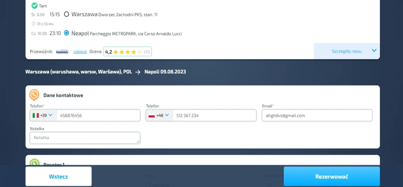 Ważne: zawsze podawaj dane osoby, która będzie podróżować i sprawdź, czy formularz jest poprawnie wypełniony. Bilet jest ważny tylko wtedy, gdy dane na bilecie są zgodne z dokumentami pasażera.