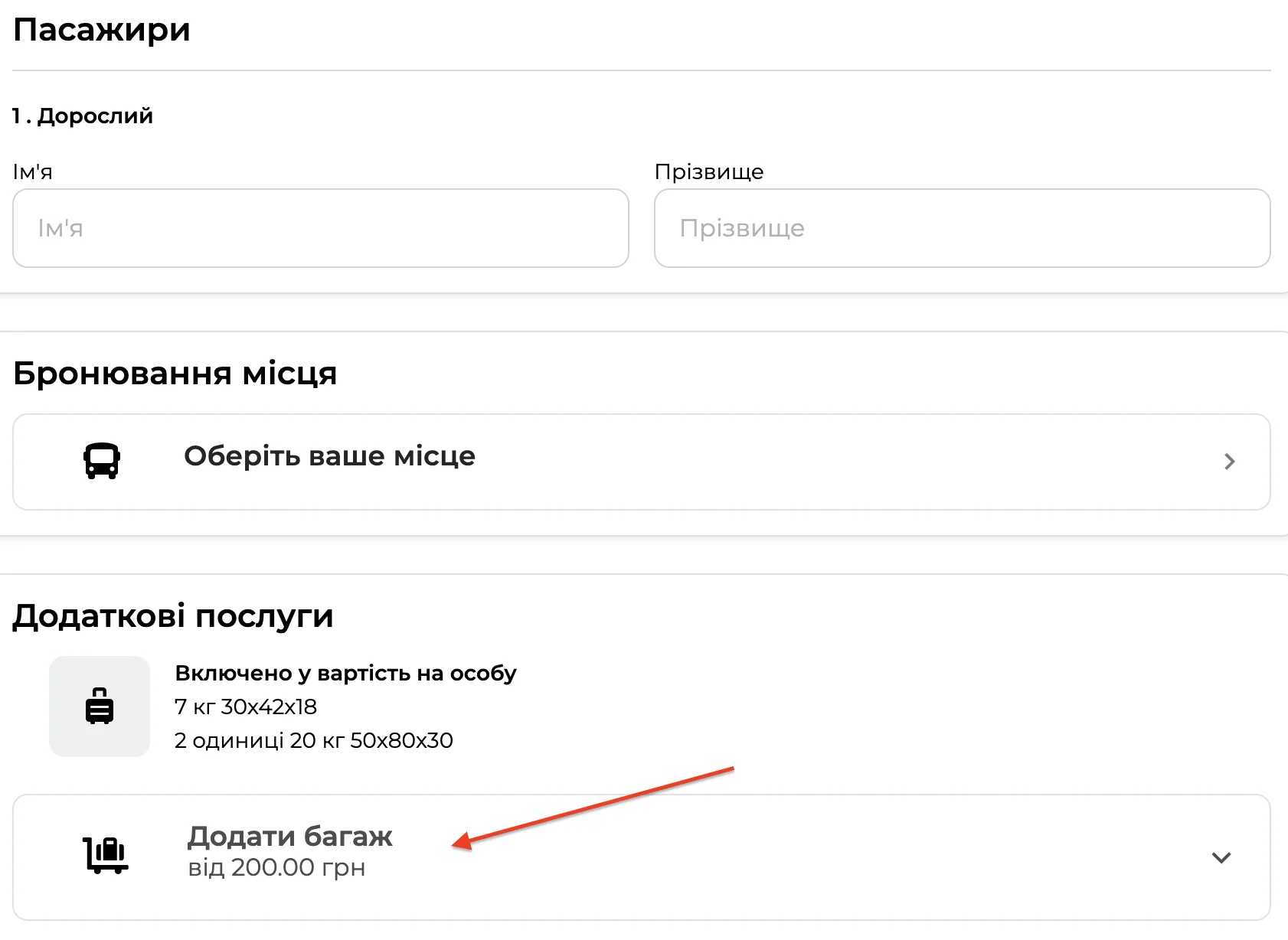 Лише на одному із трьох сайтів ми знайшли таку ж функцію, на інших двох умови перевезення багажу базуються лише на загальноприйнятих правилах.