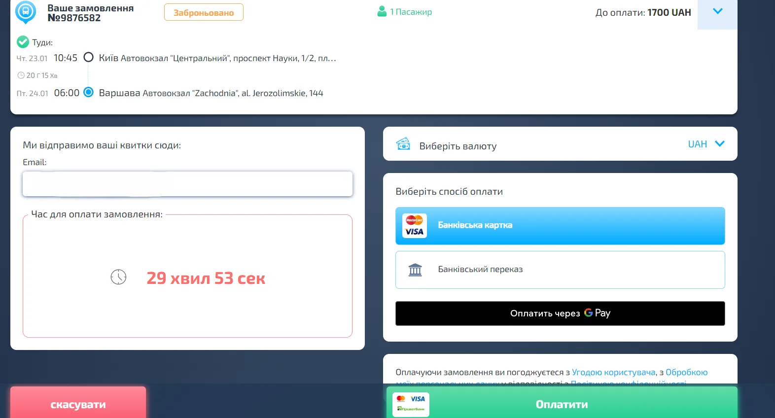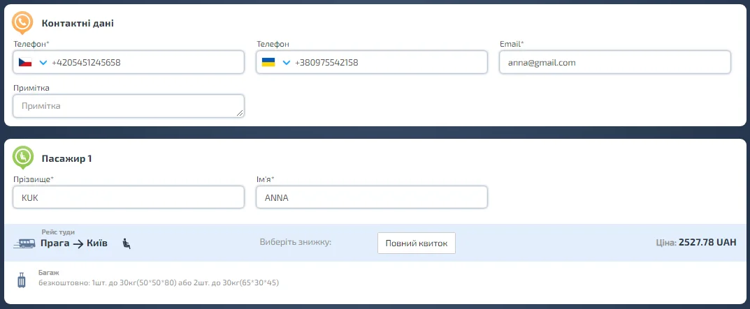 Важливо: завжди вказуйте дані людини, яка здійснюватиме поїздку та перевіряйте правильність заповнення форми. Квиток дійсний лише тоді, коли дані в квитку співпадають з документами пасажира.