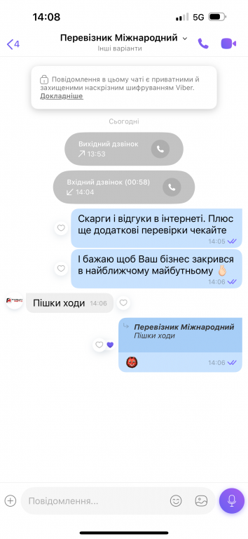 Але найкраще в цьому всьому це клієнтоорієнтованість перевізника - коли я звʼязалася по номеру телефону з представником компанії (по цьому номеру телефону +380 (95) 588 22 99 ) щодо організації подорожі та якості послуг на мене почали верещати на російські мові, і казати: што ти тут расказіваєш? Коли я попросила не верещати на мене, мені відповіли : «пошла на ****» і кинули трубку.